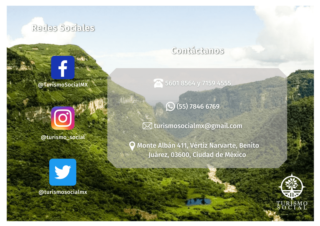 Saldremos de la Cafetería Floreced de Turismo Social (Monte Alban 411, Vértiz Narvarte), pero quien guste, podrá presentarse en la estación del metro División del Norte (explanada del Sanborns) para salir hacia las instalaciones de Turismo Social. La hora que está señalada, es en la que sale el autobús, por lo que es necesario llegar al menos 15 minutos antes.
