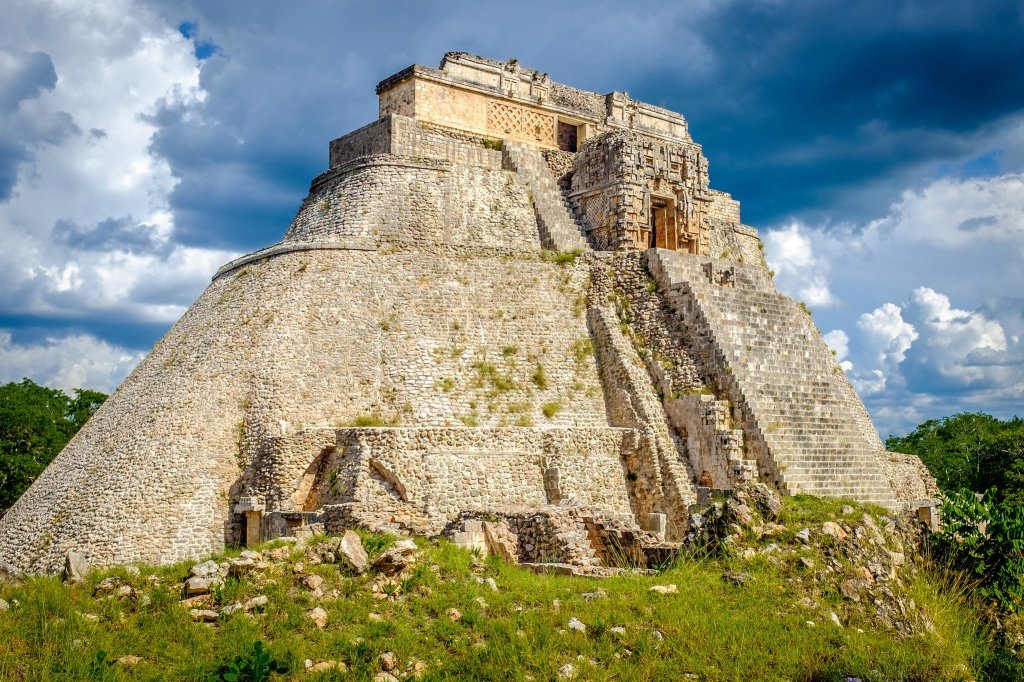 Después del desayuno, saldremos con destino a la zona arqueológica de Uxmal, donde podremos conocer, entre otras construcciones, el basamento piramidal del Adivino, con una altura de más de 35 metros, diseñada de tal modo que su escalinata se dirige al oriente, y por tanto, hacia la puesta del sol en el solsticio de verano.
